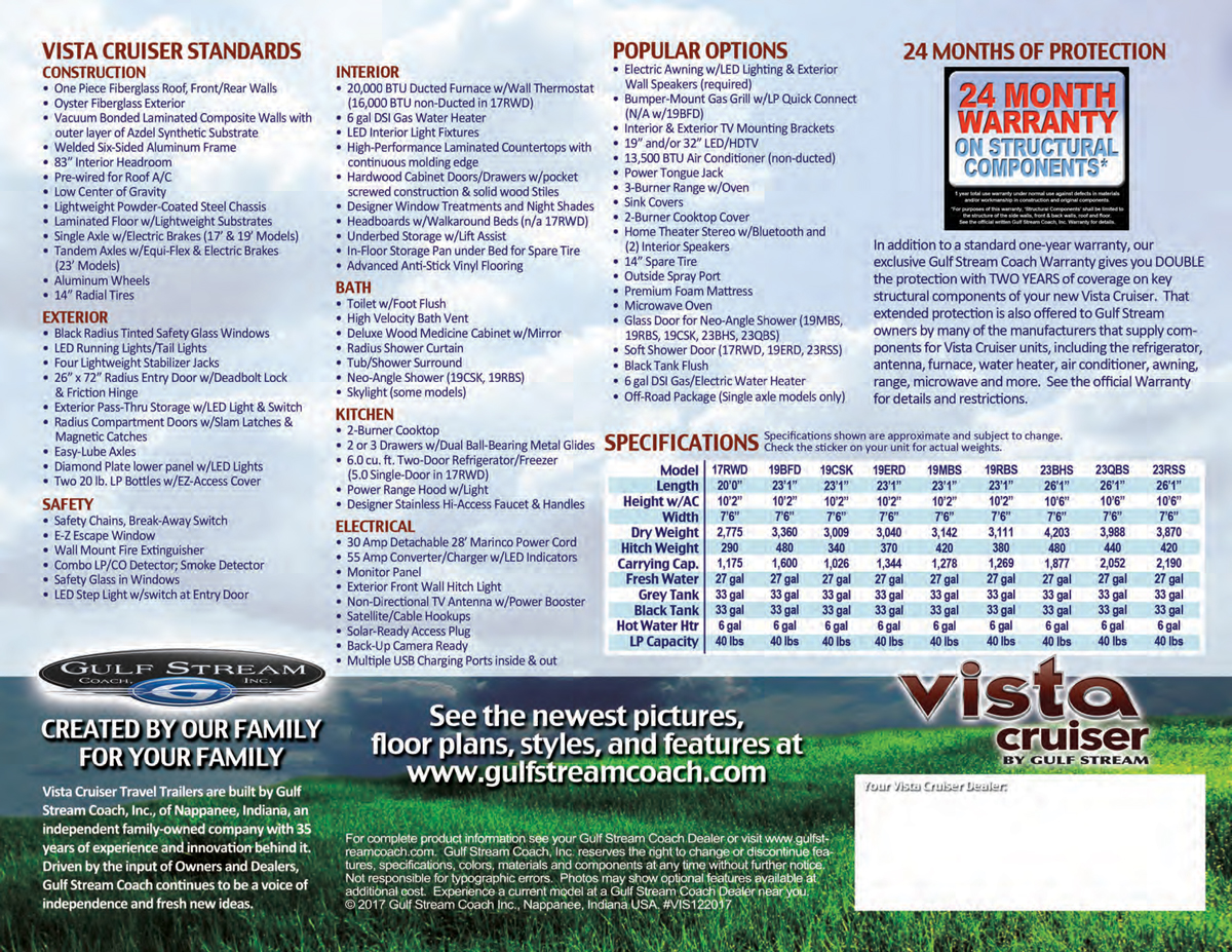 VISTA CRUISER TRAVEL TRAILERS