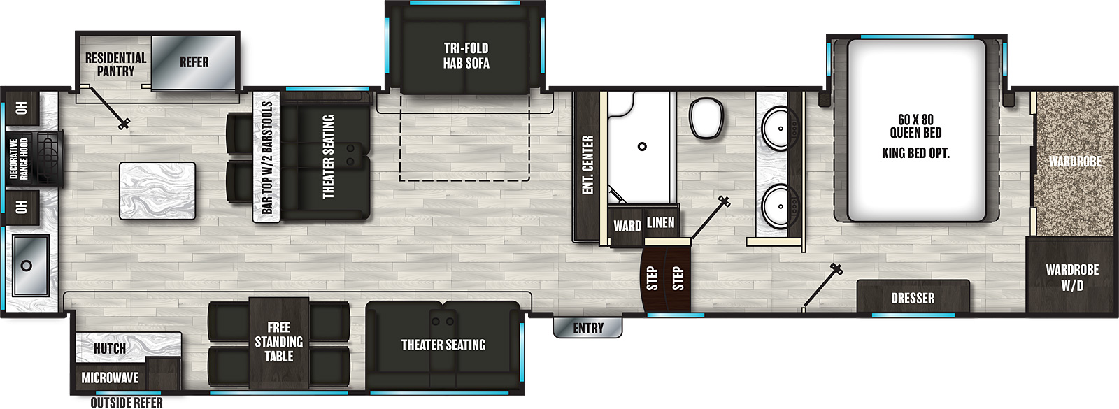 With Brookstone, our product team has been deliberate in our design to build the most user-friendly and functional luxury fifth wheel available. We’ve combined best in class towing for long journeys with well thought out storage solutions for all of your belongings. Our attention to detail will make you want to call Brookstone “home” and when you do, Brookstone will strengthen your passion for the great outdoors.