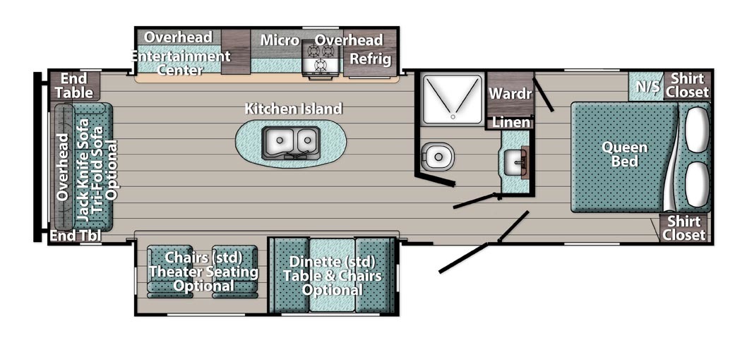 - 44” Booth Dinette or U-Shaped Dinette (see floor plans for specifics)
