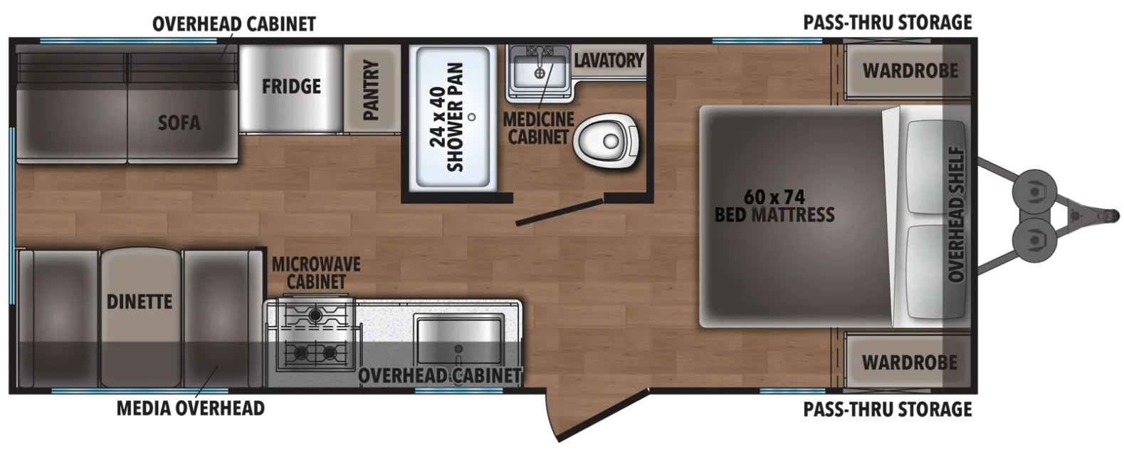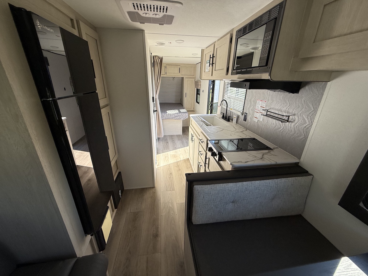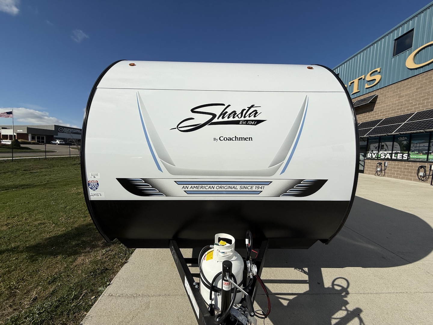 Shasta offers a wide variety of quality affordable lighter weight floorplans that are packed with convenience and value. Designed for couples and families to get away from it all and enjoy some well-deserved rest and relaxation. Shasta has been providing memories to campers for generations. Our well laid out interiors are bright and airy with modern woodgrain cabinetry, LED interior lights and residential styling countertops. You will absolutely love the large stainless steel residential refrigerator. You may want to add the optional free standing dinette with 4 chairs or LED fireplace to spark up your interior.